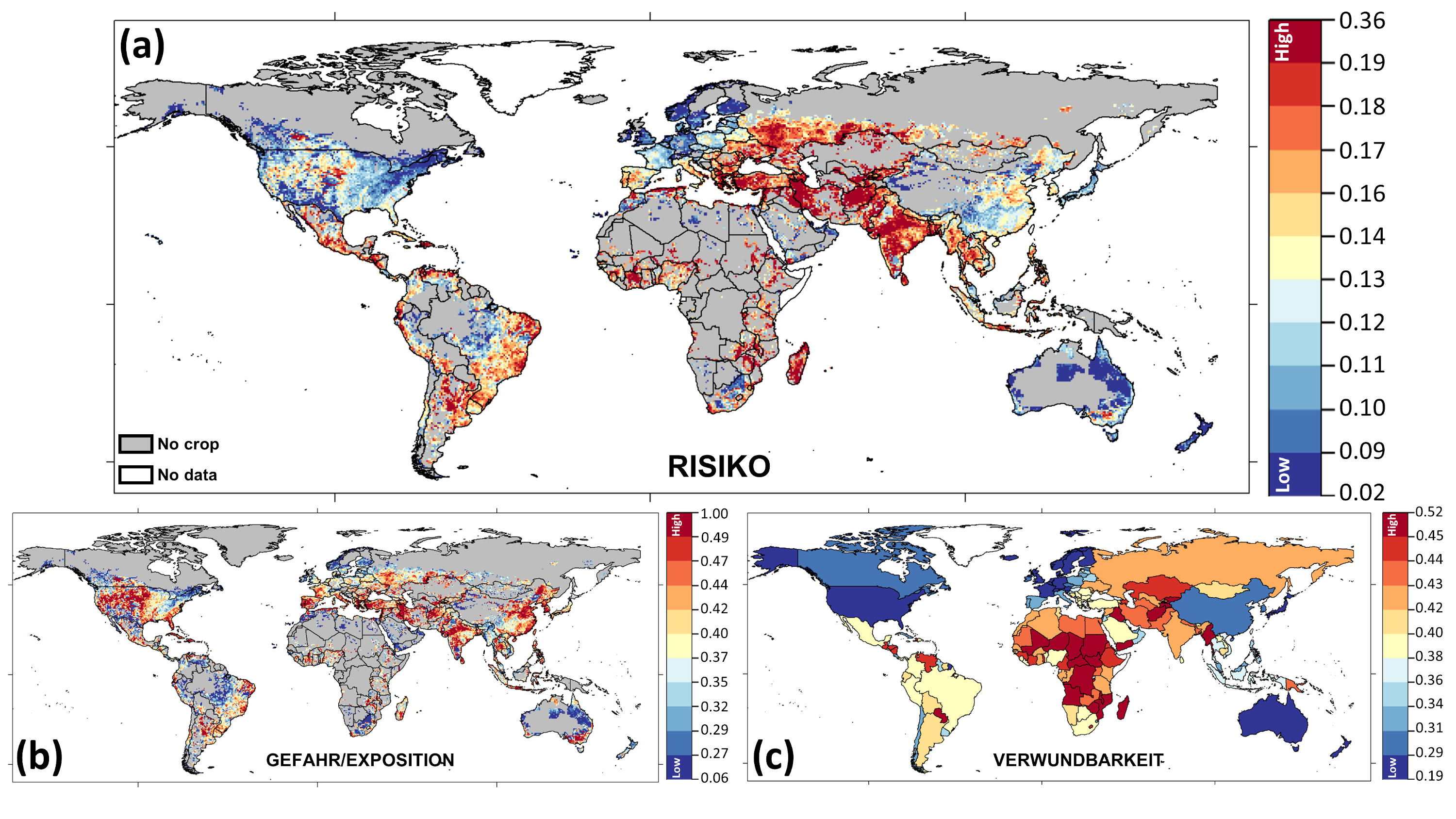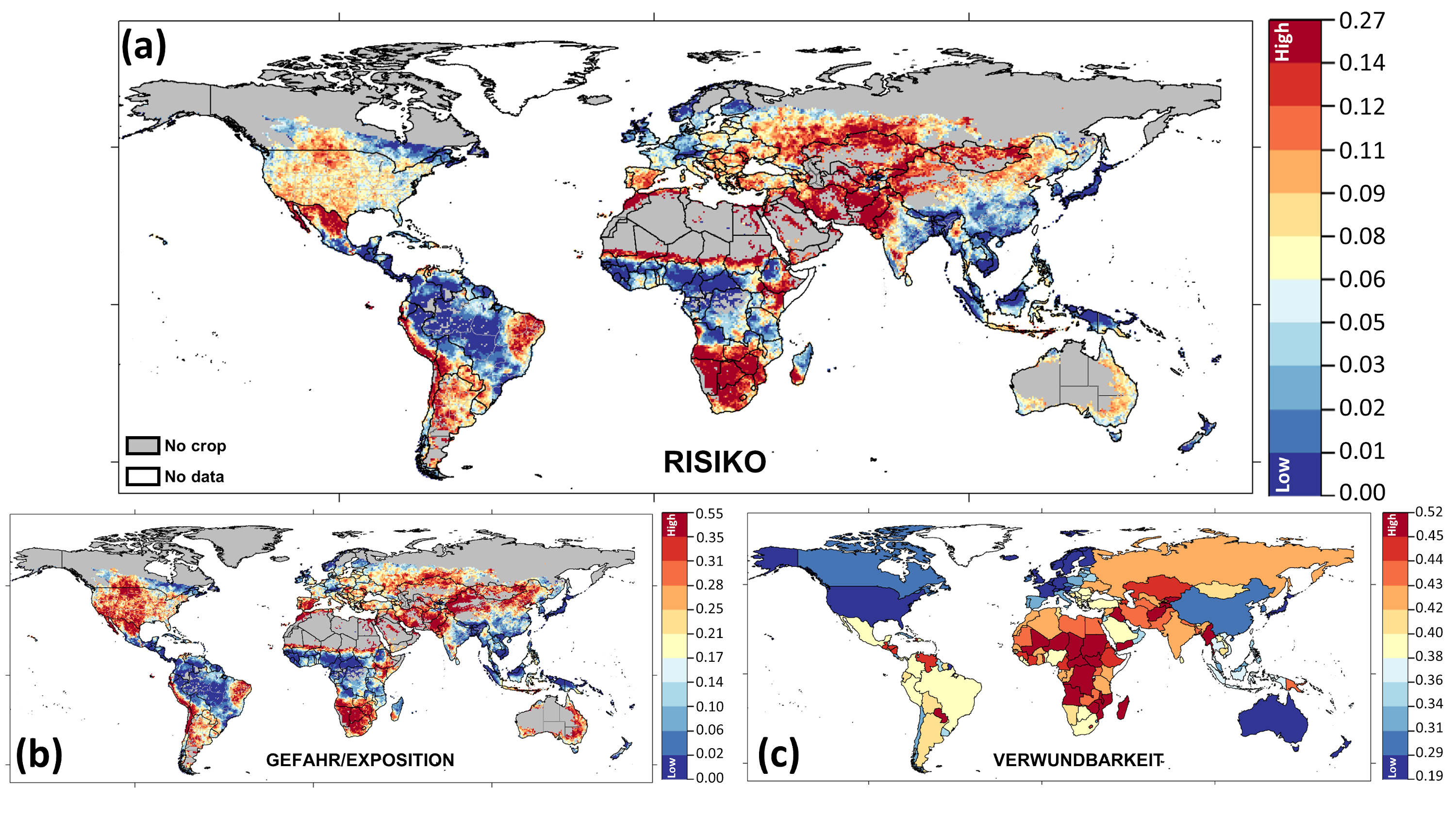 Erstmalig wurde das Dürrerisiko weltweit, getrennt für Bewässerungslandbau und Regenfeldbau, für den Zeitraum 1980-2016 analysiert, wobei die Risikokomponenten Dürregefahr, Exposition und Verwundbarkeit explizit berücksichtigt wurden.