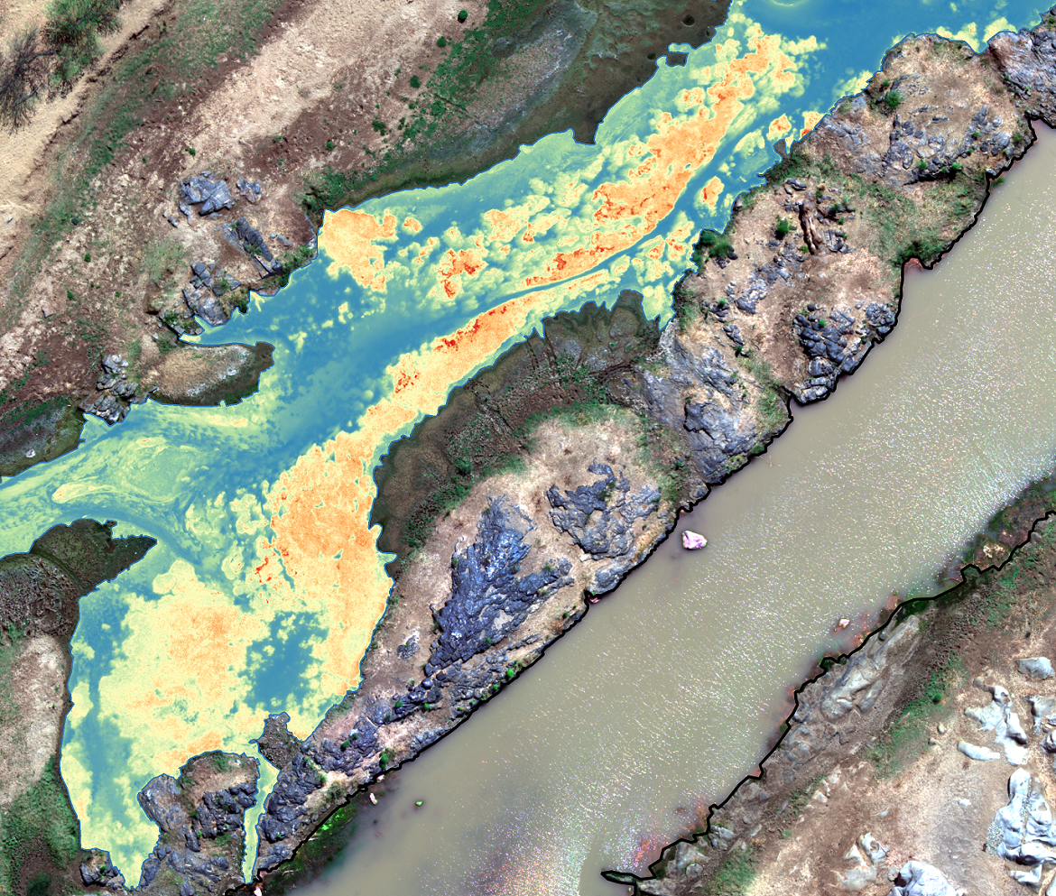We also added the Micasense RedEdge MX multispectral sensor to the drone; this enables aerial images in five wavelengths of visible light (red, green, blue) and of light invisible to the human eye (infrared, red edge). Post-processing allows the calculation of common vegetation or algae indices (e.g. NDVI, SABI).